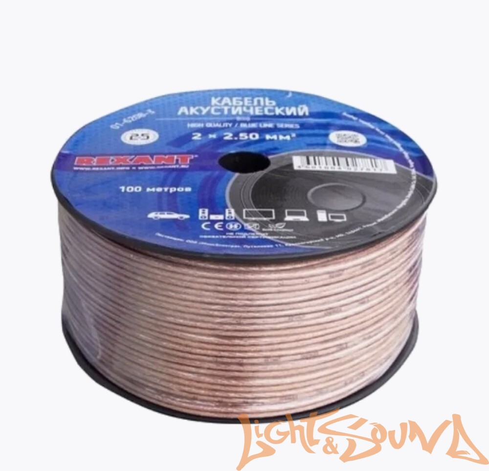 Задать вопрос о товаре: REXANT 2*2,5 Кабель акустический прозрачный OFC Медь 100%, 100м в катушке