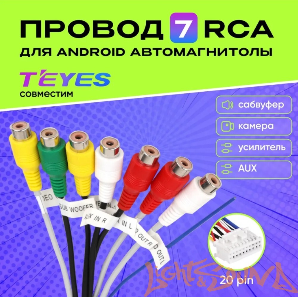 Разъем 7 RCA 20pin для магнитолы Android