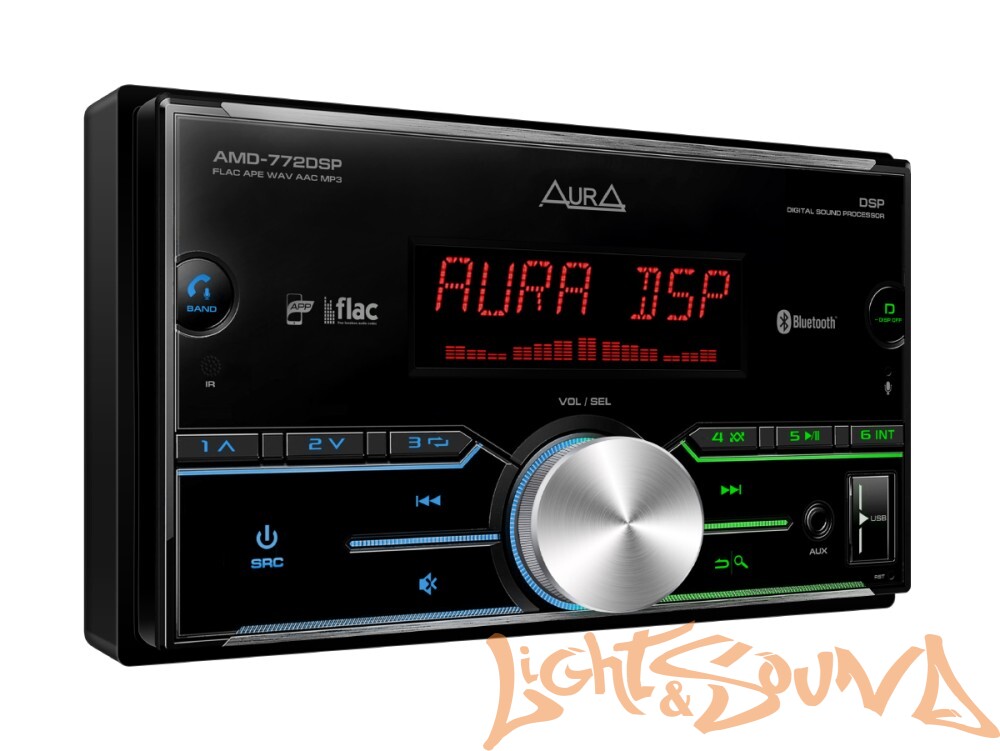 Aura AMH-772DSP 2DIN USB-ресивер, 4x51, USB/FM/AUX/BT,3RCA,DSP, RGB-подсветка