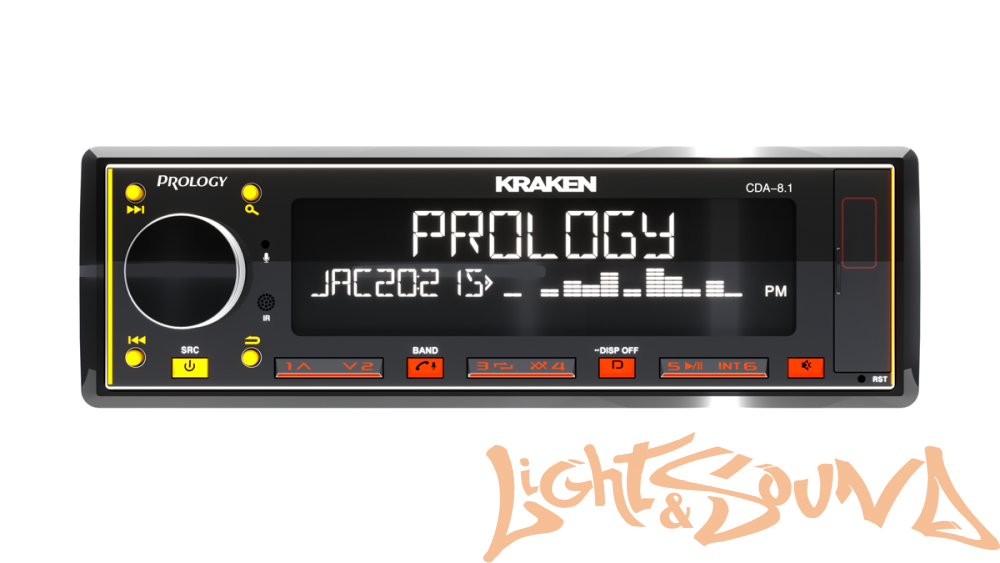 PROLOGY CDA-8.1 KRAKEN — FM / USB / ВТ ресивер с Bluetooth, стандартного размера 1DIN, который обеспечивает прием радиостанций в диапазонах FM/УКВ, воспроизведение аудиофайлов MP3, WAV и FLAC форматов, записанных на USB-накопители, передачу звука с внешних источников через линейный аудиовход и беспроводной интерфейс Bluetooth (ver. 4,2).. Кроме того, устройством можно управлять с помощью приложения, установленного на Ваш смартфон с операционной системой Android/iOS