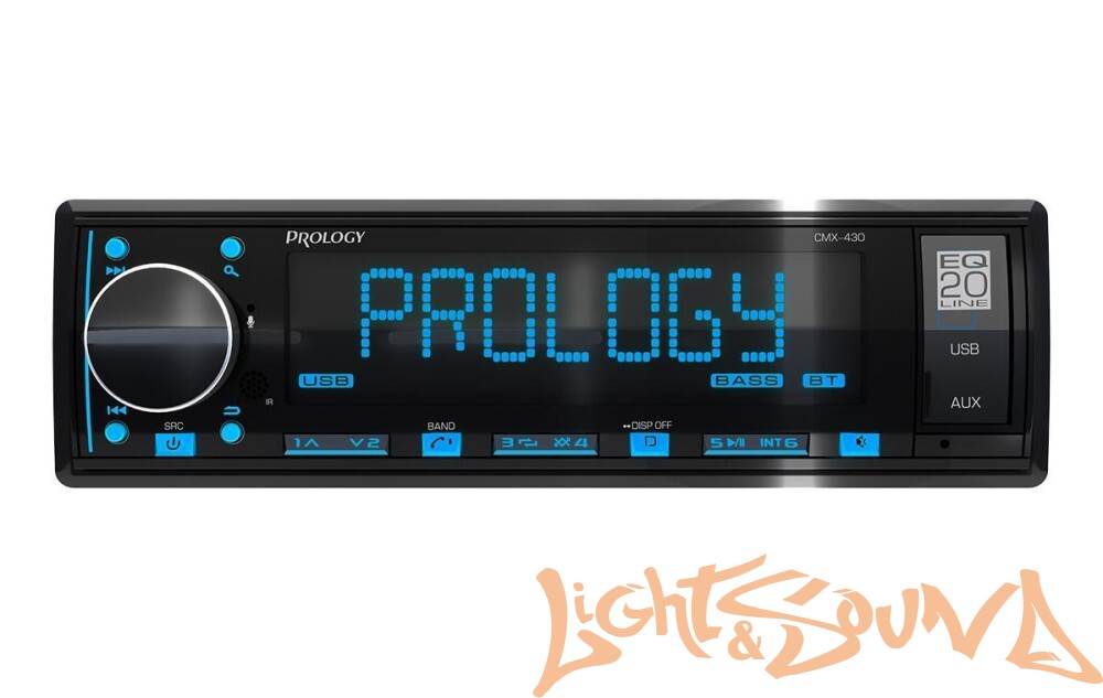 PROLOGY CMX-430 — FM/USB-ресивер с Bluetooth®, поддерживающий все популярные аудиоформаты, включая MP3, WAV и FLAC, оснащается 20-полосным эквалайзером, обеспечивающим более тонкую настройку звука.