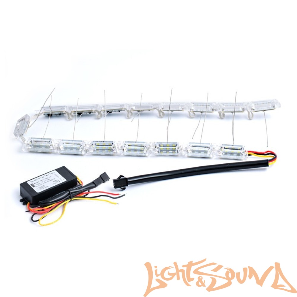 ДХО S8 CrystalAUDI Style (трапецевидная призма с поворотником бегающий огонь), комплект 50см, (12-24v)