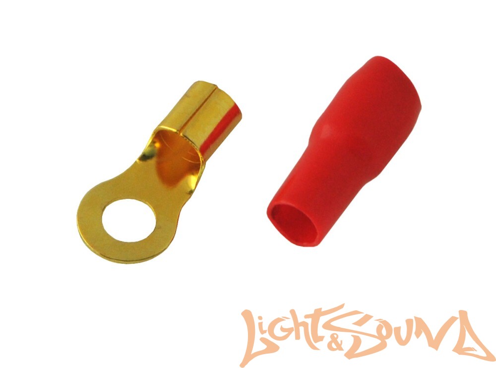 Клемма кольцо 4GA Клемма на силовой провод для удобного присоединяя «под болт». Подобные клеммы следует обжимать напроводе при помощи специального пресса. Также можно хорошо пропаять соединения провода и клеммы. Это обеспечит хороший и надежный контакт.