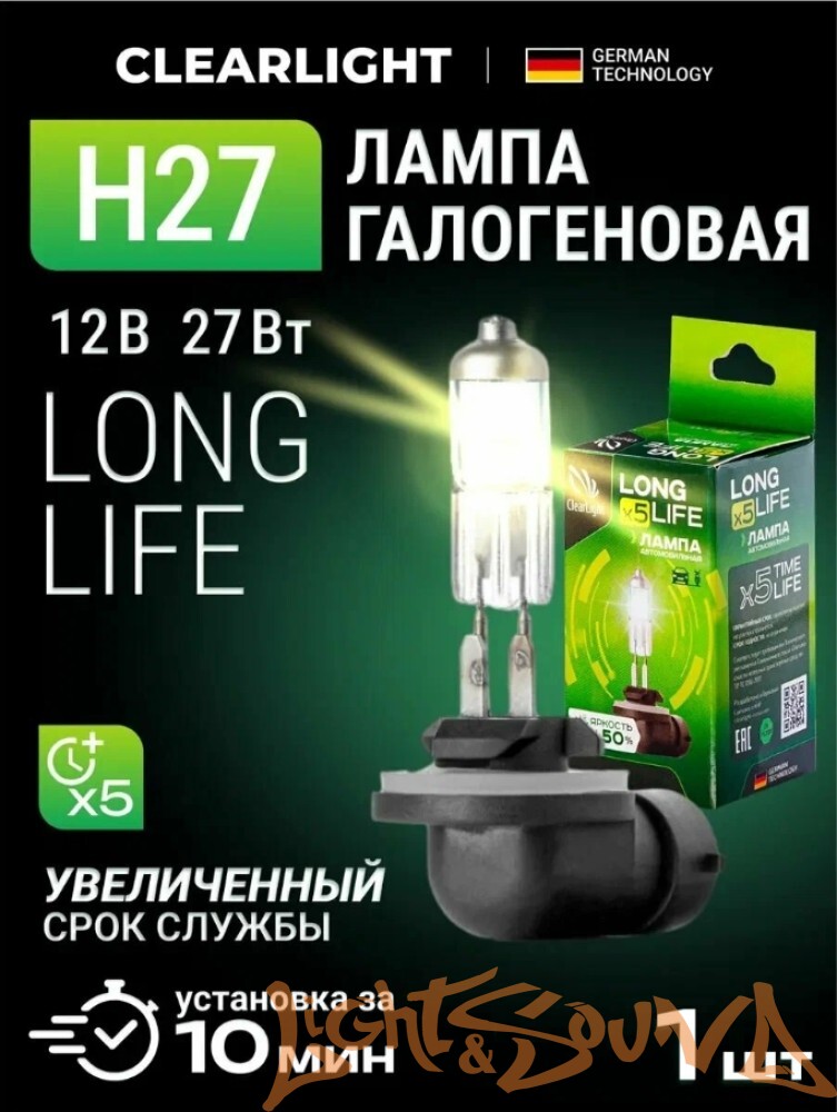 Clearlight LongLife H27 12V, 27W Галогенная лампа (1шт)