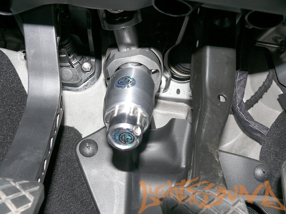 Перехват-Универсал блокиратор рулевого вала, установленный на рулевом валу автомобиля.
