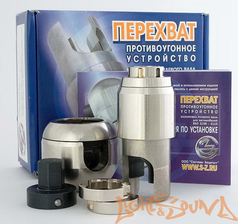 Перехват-Универсал блокиратор рулевого вала. Комплект поставки: блокиратор, муфта, два ключа.