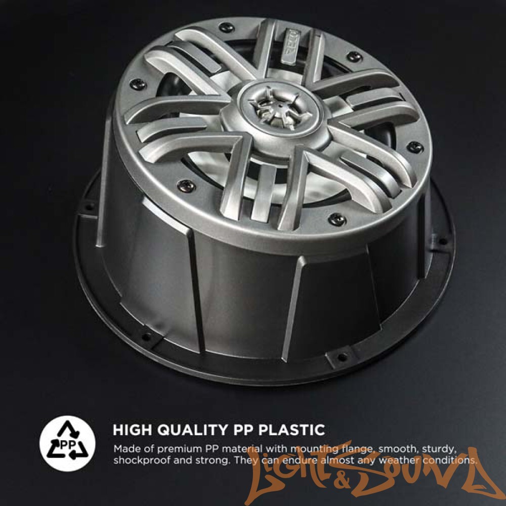 Динамики Recoil изготовлены из высококачественного полипропилена с монтажным фланцем, они гладкие, прочные, ударостойкие и надёжные. Они выдерживают практически любые погодные условия.