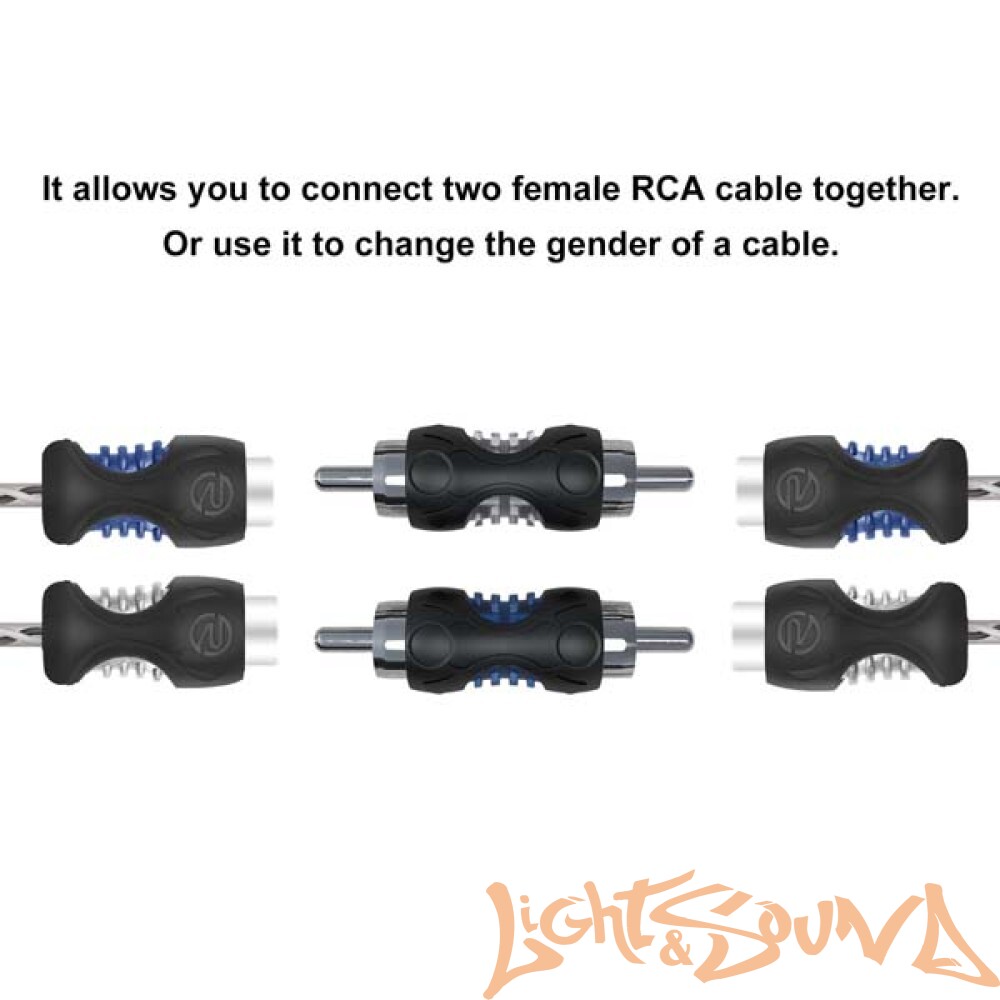 Компактный, стильный корпус RCA с двойным литьем под давлением обеспечивает надежное соединение, в отличие от других литых под давлением адаптеров RCA. Никелированные разъемные разъемы RCA обеспечивают отличную передачу сигнала.