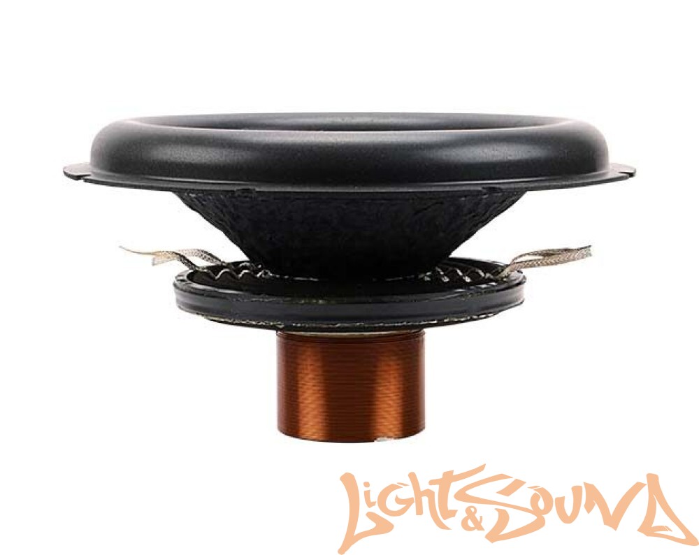 Четырехслойная высокотемпературная двойная звуковая катушка (Made in S. Korea) типоразмером 3″ (76,2 мм) с высотой намотки 55 мм. Подвижная система позволяющая достичь высоких показателей линейного хода. Два кольцевых высокоэффективных ферритовых магнита (200x100x25 мм каждый). Массивные фланцы толщиной 20 мм каждый. Выводные провода из чистой бескислородной меди покрытые оловом сечением 8 Ga (8,35 мм2). Пакет из трех высокопрочных центрирующих шайб из материала Nomex c дополнительным металлическим фиксирующим кольцом. Кевларовый пылезащитный колпачок.