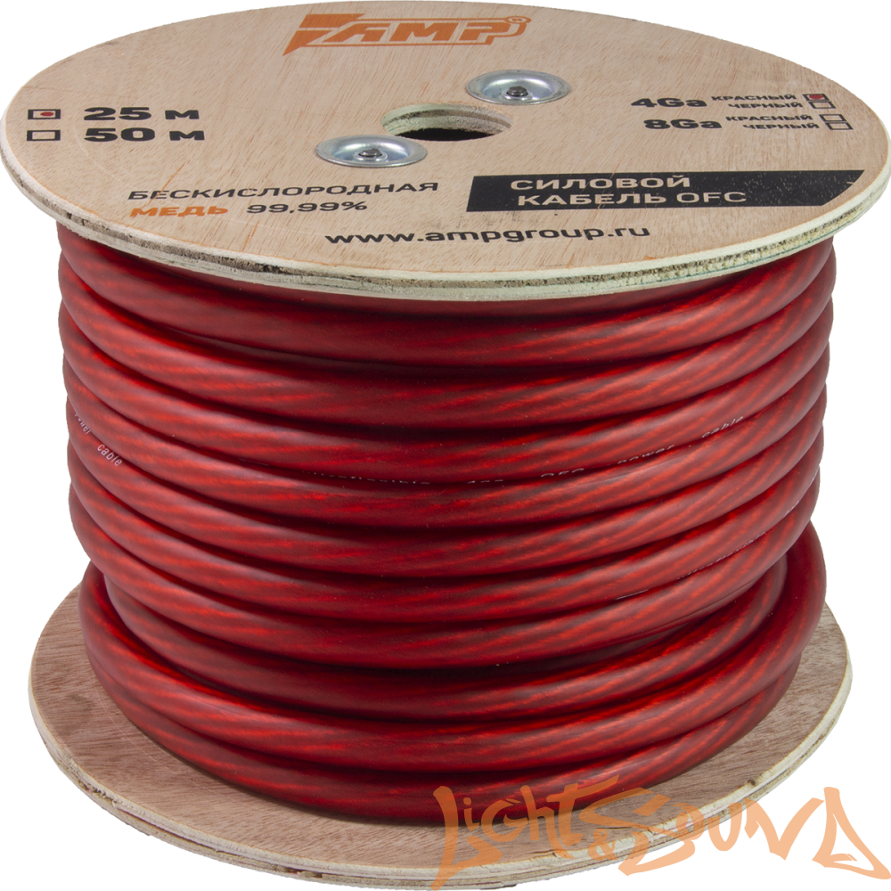 AMP 100% Кабель силовой, OFC Ultraflexible, 4GA/20мм2 красный, 25м в катушке