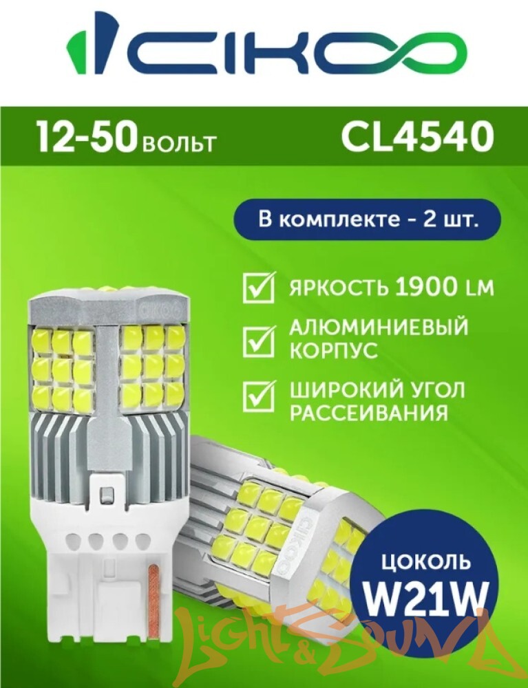 CIKOO W21W, CL4540, 12-24V, 45SMD AVIA, 1800Lm, (2шт)