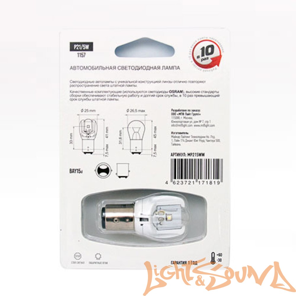 Отзывы покупателей о товаре: MTF P21/5W, цвет белый, 12В, 2,6Вт, 1шт