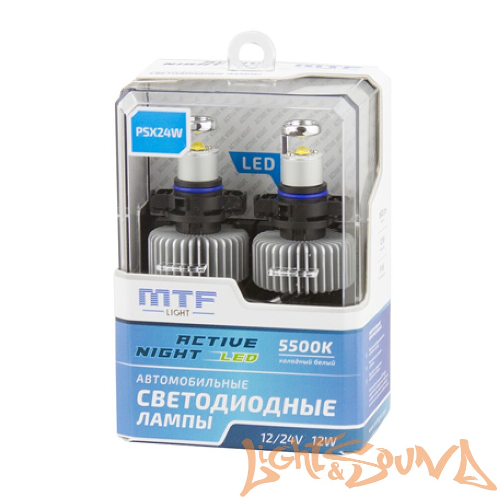 Светодиод головного света MTF LED, Active Night, 1600lm, 12W, 5500K, PSX24W (2шт)