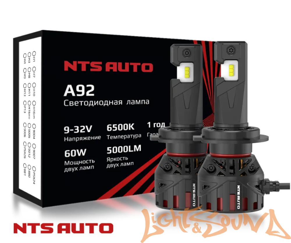 NTS AUTO A92 H4/H19, 9-32V, 60W, 6300K (2шт)