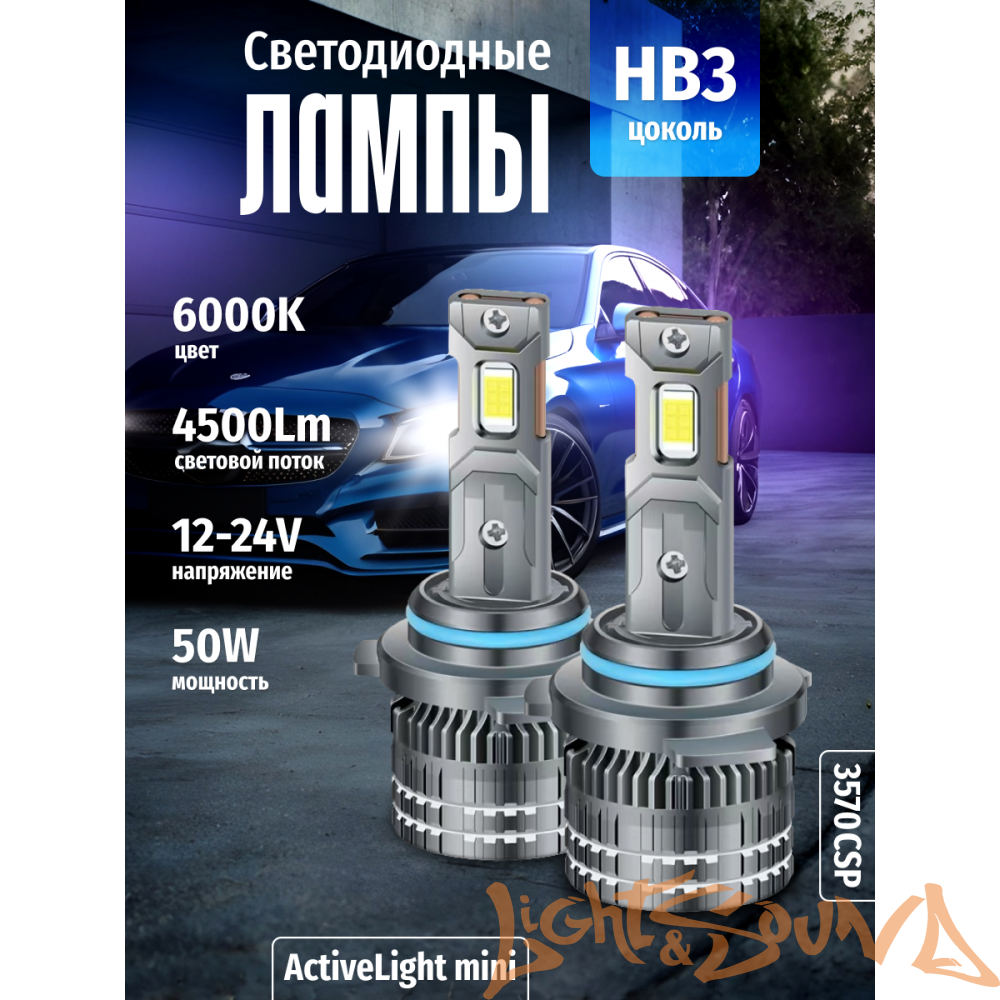 SVS ActiveLight mini HB3, 4500Lm, 12-24V, 50W, 2шт