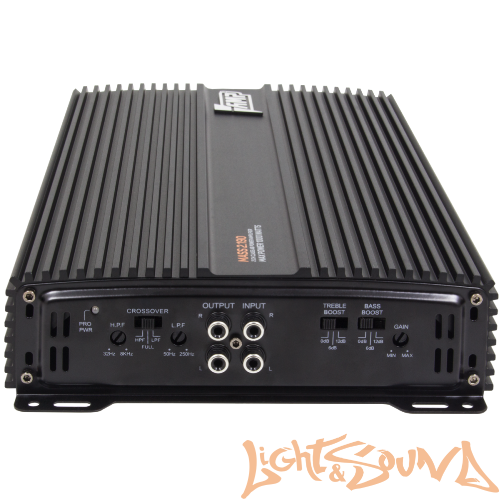 MASS 2.190 Является самым мощным 2х канальным усилителем в своей линейке. Способен отдать более 500 ватт в мостовом подключении. Подойдет практически ко всем динамикам и способен раскрыть потенциал большинства недорогих сабвуферов. Развитый кроссовер позволяет работать от любых магнитол. Высокая номинальная мощность позволяет применять усилитель в самых громких системах.