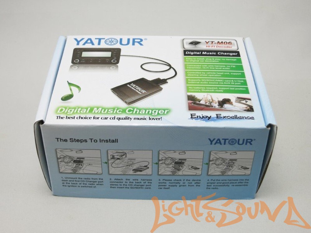 Адаптер Yatour YT-M06— это модуль дооснащения штатных магнитол и полнофункциональное решение для декодирования и воспроизведения MP3/WMA на головном устройстве автомобиля. YATOUR обеспечивает звук высокого качества непосредственно в стерео системе через порт CD-чейнджера. YATOUR ,не урезая функционала вашей магнитолы, подключается в разъем на тыльной части аудиосистемы, и дополняет ее возможности воспроизведения с цифровых носителей.