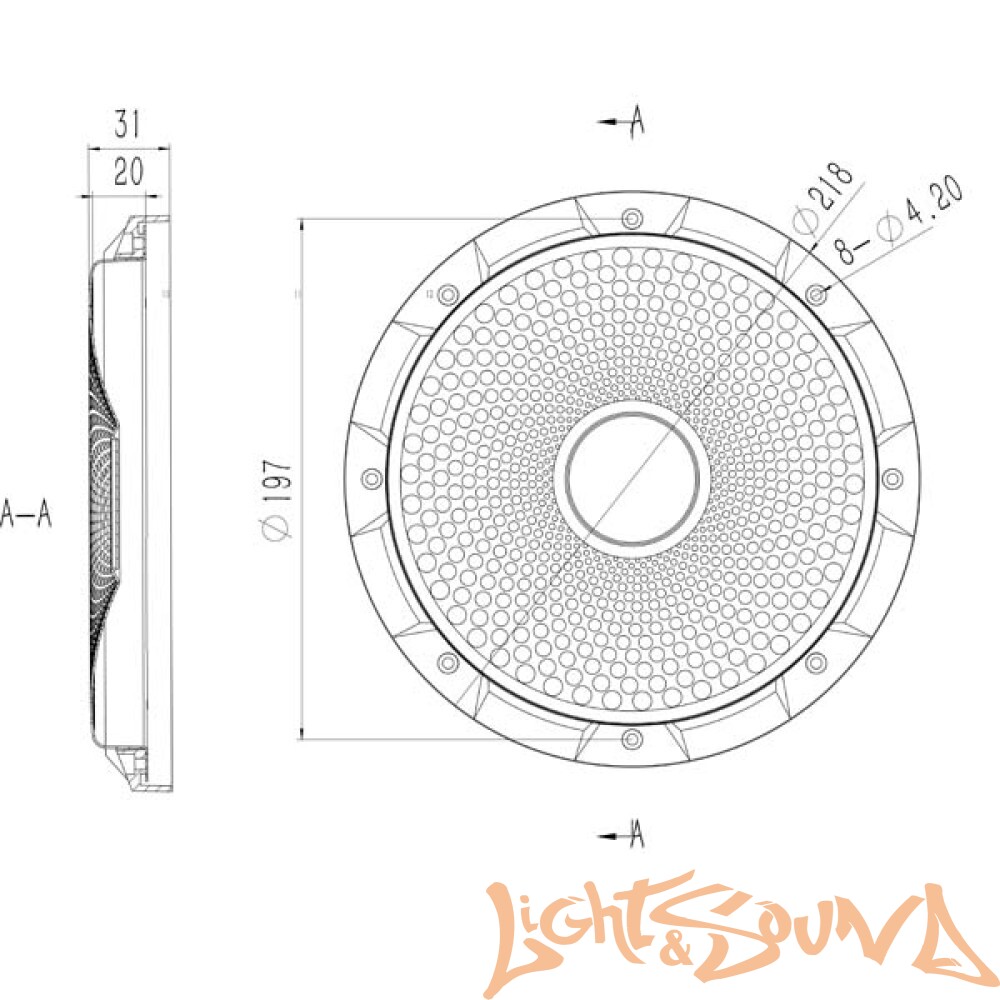 В отличие от других решеток со стальными стержнями, она обеспечивает полную защиту от повреждений подвесов, окантовки и диффузора сабвуферного динамика.